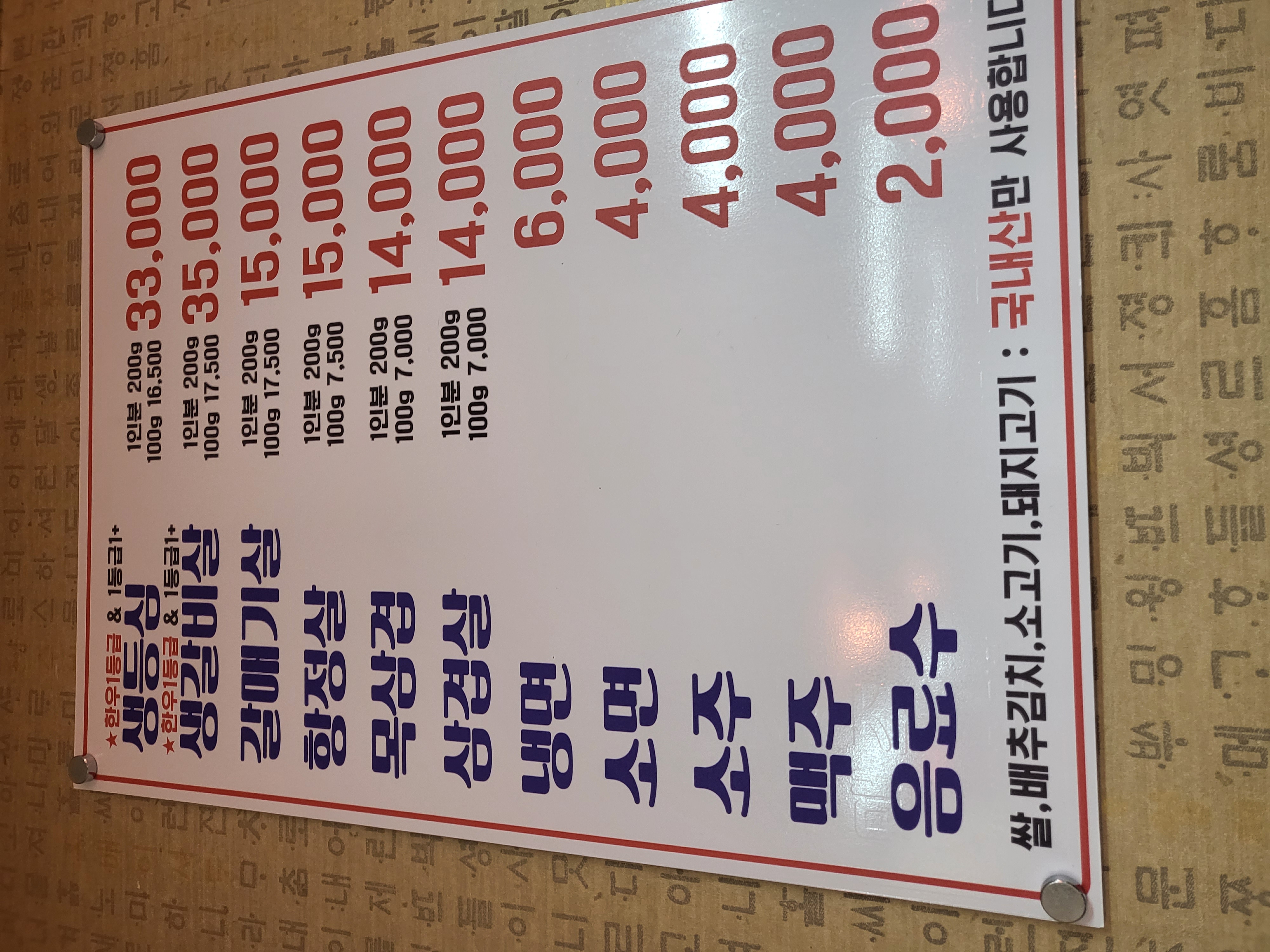 우리식당의 주메뉴는 한우(소고기)와 삼겹살이 아주 맛이있고 일등급만 취급하는 식당으로 영업을 하고 있습니다.