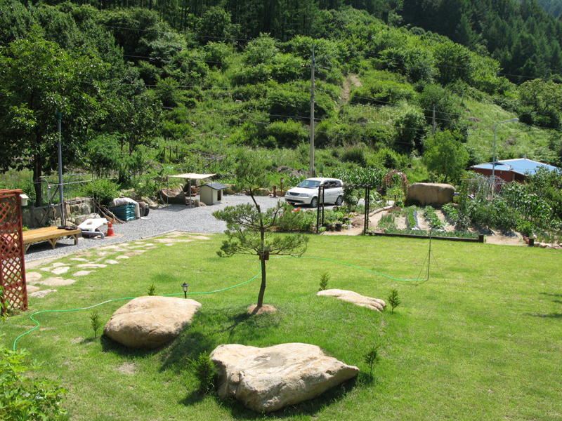 산천어가 서식할 만큼 맑고 시원한 청정계곡 새밭계곡이 집 주위를 흐르고 있어 온 가족이 함께 찾아