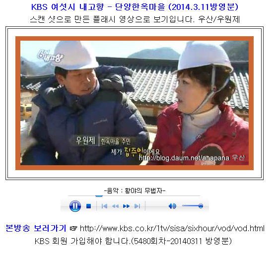 검색어 “우산정사” 또는 “단양한옥마을”