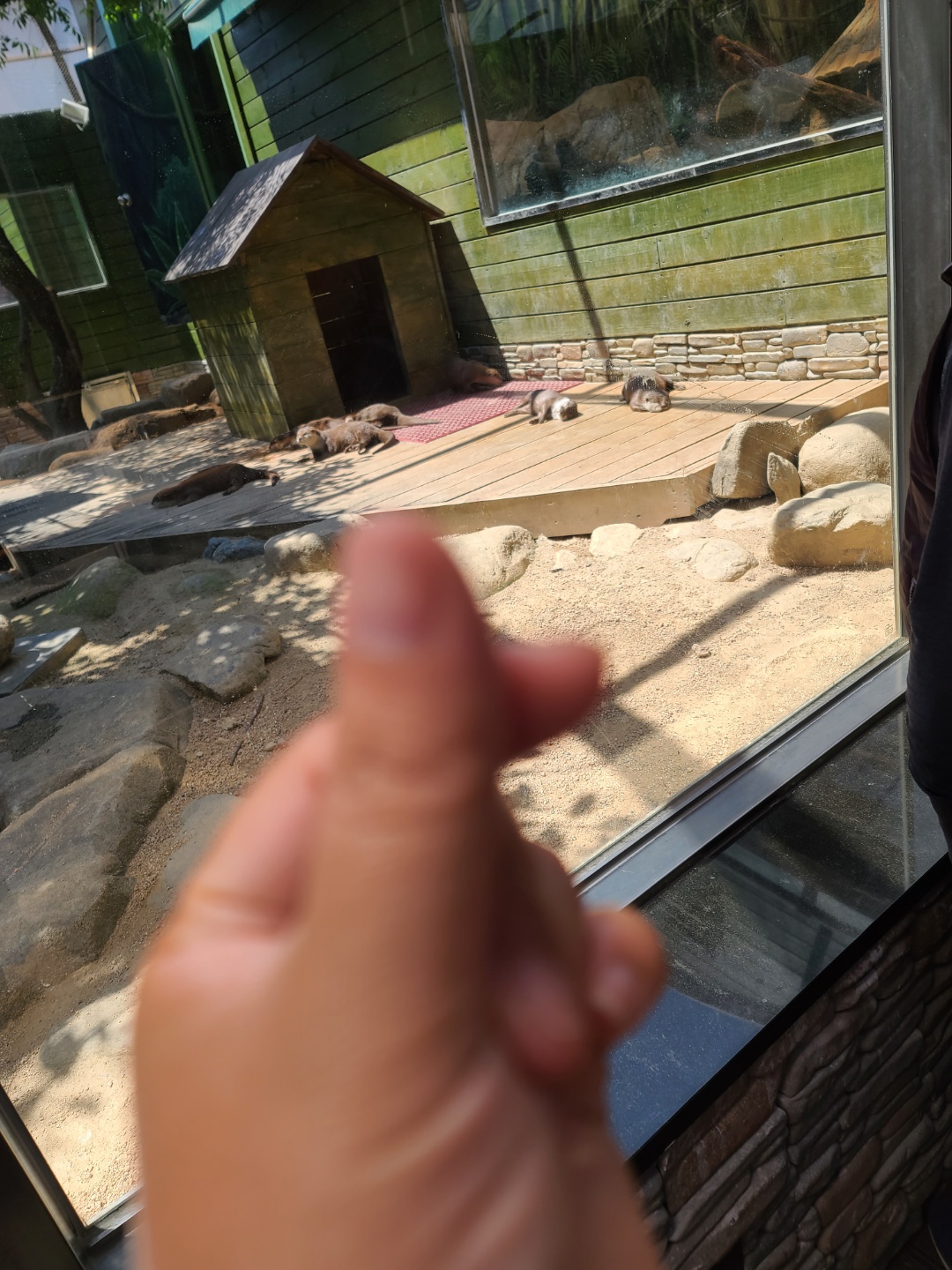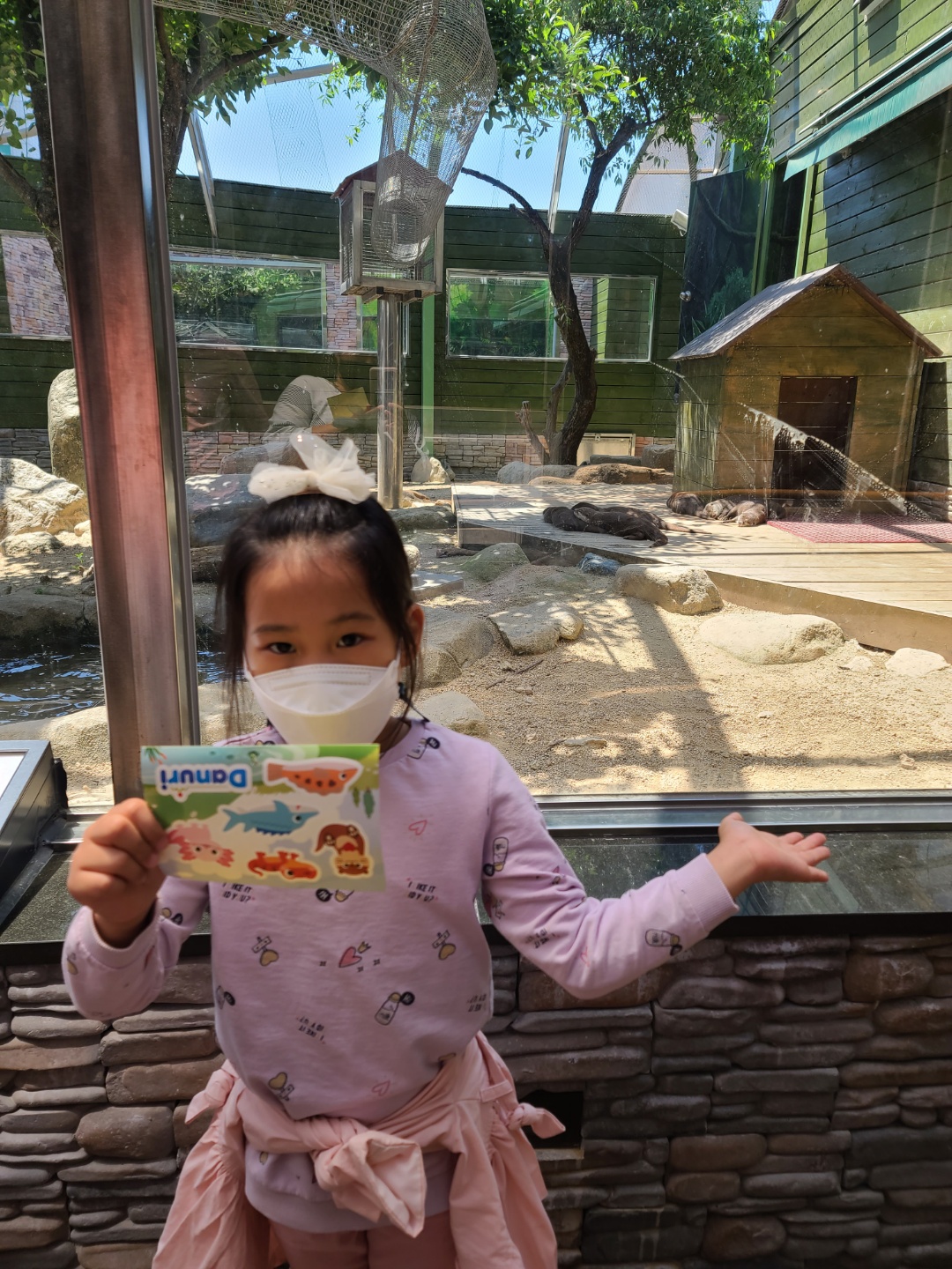 가족들과 함께 수달을 보려고 아무리 기다려도 누워만 있었어요