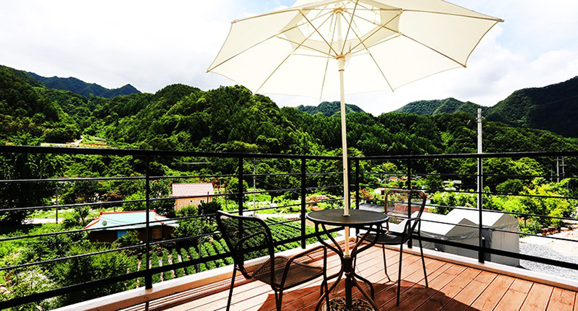 * 각호실 테라스, 각호실 개별바베큐장.