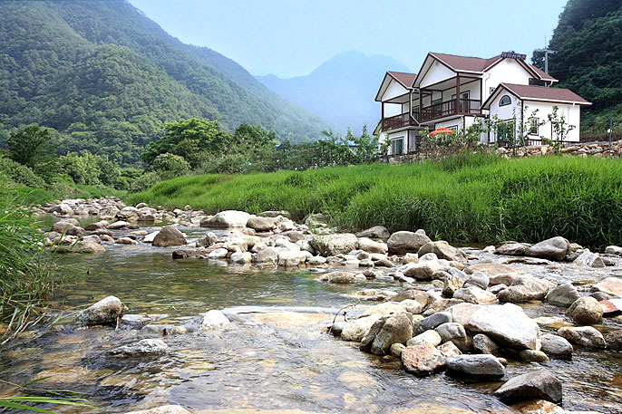 저희 펜션은 아침이면 펜션앞 계곡의 물안개를 따라 산행을 하여 맑은 공기를 마시며 심신을 새롭게 하고 좋은 공기와 함께 맑은 물을 마시며 또한 몸을 새롭게 할 수 있습니다.